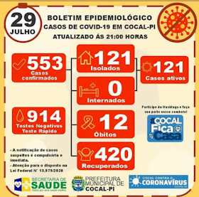 A Secretaria Municipal de Cocal divulgou nesta Quarta Feira dia 29 de Julho um novo boletim. COCAL